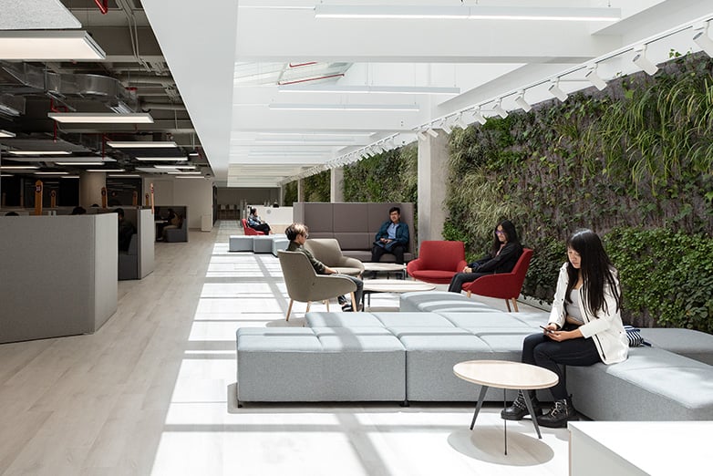 Las áreas de tránsito, como pasillos, distribuidores y antesalas se han dotado sillones Noom y mesas auxiliares. Mobiliario que ayuda a generar espacios para desconectar y reconectar a la vez, y donde las personas son el centro de todo.
