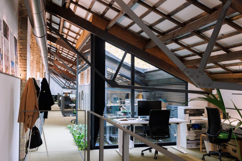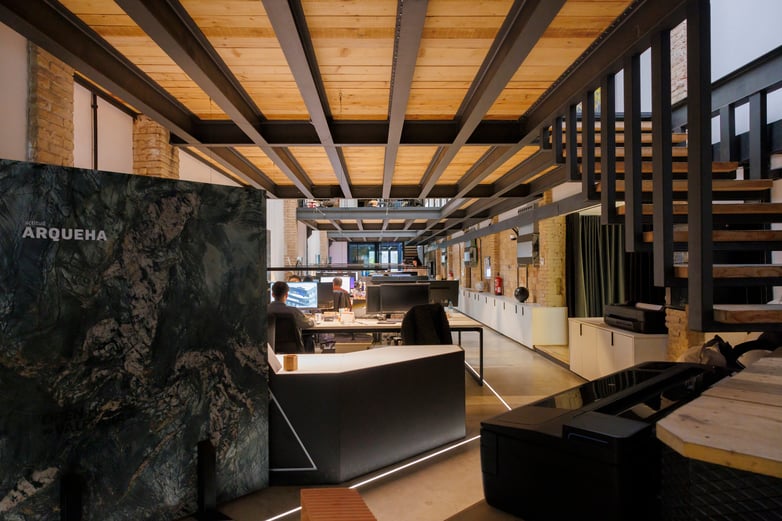Las nuevas oficinas de Arqueha, situadas en la Calle Marvá 13, son un proyecto iniciado en 2021, que transformó una nave industrial construida en el año 1940 de 1.100 m2 de superficie, ubicada en el interior de un patio de manzana del barrio de Arrancapins, en un nuevo foco de actividad.