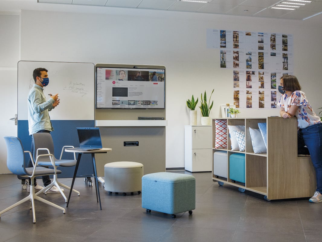 À l'heure actuelle, le travail hybride (en distanciel + en présentiel) est devenu à la fois une tendance et une réalité. Les bureaux traditionnels doivent évoluer de manière flexible, agile et intelligente afin de pouvoir attirer le talent, la créativité et de tirer le meilleur parti du présentiel.