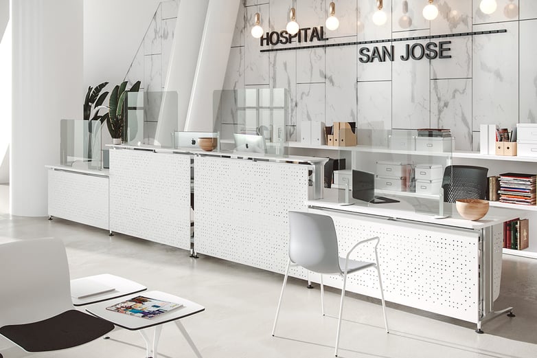 La capacité à réinventer et adapter ces environnements aux nouveaux besoins grâce au design, au mobilier et à la décoration, est primordiale. Même si, a priori, les zones de travail ouvertes dont disposent de nombreux bureaux et espaces de co-working pourraient se transformer en d’éventuels foyers d’infection, de nombreuses mesures permettent de l’éviter. Il existe plusieurs propositions destinées à améliorer la sécurité des professionnels et des clients. En voici quelques-unes : limiter la capacité de remplissage, signaler la distance minimale ou séparer les environnements à l’aide de solutions telles que les panneaux polyvalents et configurables Link, ou les cloisons de protection en méthacrylate et en verre qui sont venues s’ajouter au catalogue Actiu.