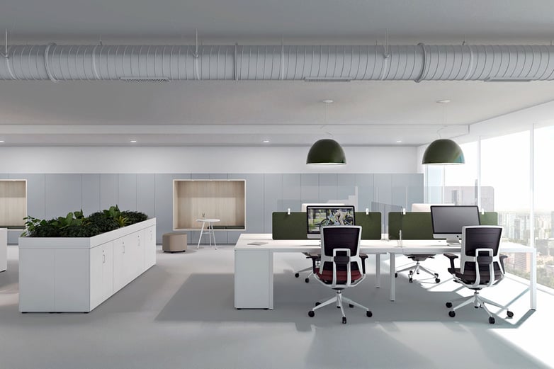 D’autre part, il existe différents aspects à prendre en compte pour réinventer ces nouveaux espaces de travail : bénéficier d’une bonne qualité de l’air grâce à une aération, une température et un taux d’humidité adéquats, et à un éclairage qui respecte le rythme circadien des personnes. La durabilité à travers l’utilisation de matériaux respectueux de l’environnement, et le recyclage qui connaît un engouement croissant deviennent les guides d’une conception qui se base sur la santé des travailleurs. Dans cette optique et en continuité avec une philosophie engagée vis-à-vis du bien-être des personnes, Actiu mise sur l’emploi de mélamine sans formaldéhyde dans tous ses produits et options de capitonnages avec des tissus antibactériens qui repoussent la saleté.