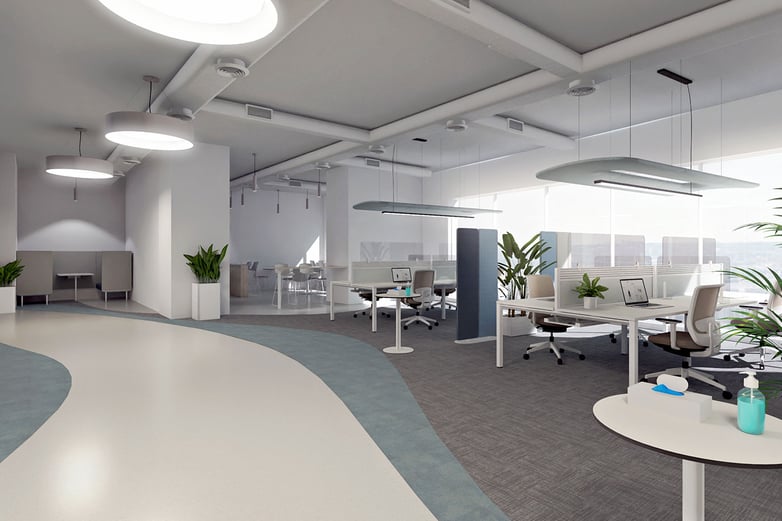 Distance minimale de 2 mètres entre travailleurs, réduction du taux de remplissage, conscience écologique, transformation numérique, mobilier ergonomique, cloisons de sécurité, matériaux antibactériens ou espaces flexibles et polyvalents : tous ces concepts sont devenus essentiels pour ces lieux de travail réinventés. Tout cela vient s’ajouter aux protocoles à mettre en œuvre afin de faciliter le respect des règles d’hygiène des travailleurs et de leurs postes de travail, à la signalétique qui garantit la circulation sécurisée dans les installations et à une importante mise en œuvre de la technologie à l’aide de caméras de contrôle de la température corporelle et de capteurs qui réduisent le contact tactile dans les zones à utilisation partagée, comme les ascenseurs ou les toilettes.