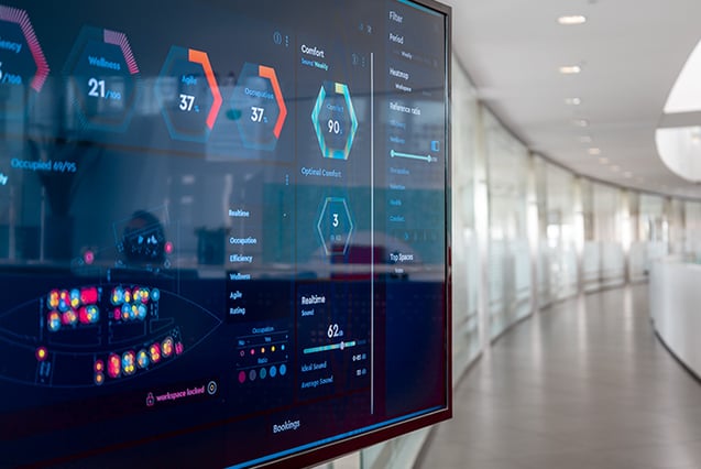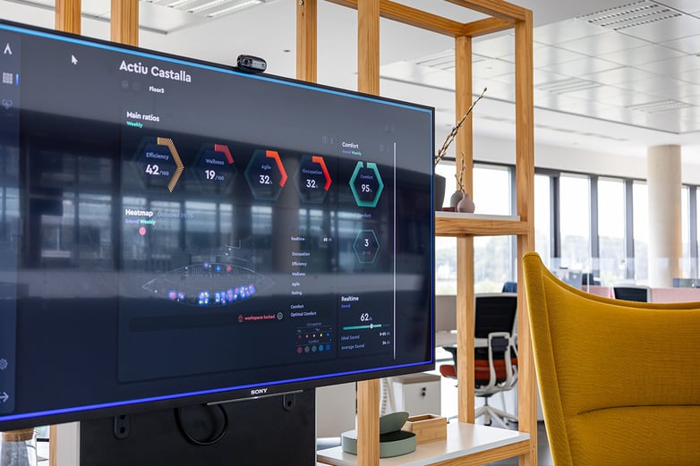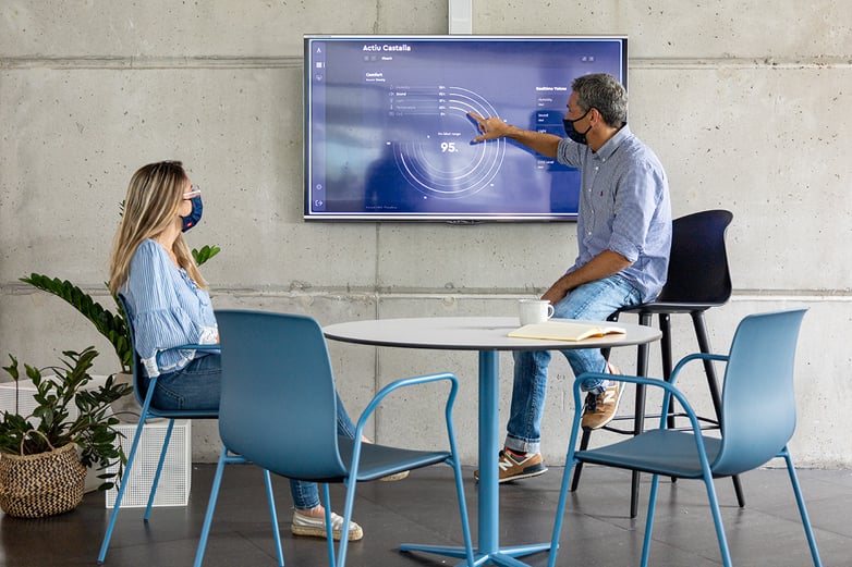 Plus précisément, chacun des capteurs installés dans les postes de travail saisit en temps réel des informations sur la température, le taux d'humidité, le son, la lumière et la présence humaine, tandis que les dispositifs installés dans les zones ouvertes enregistrent la qualité de l’air, c'est-à-dire la concentration de dioxyde de carbone (CO2) et de particules en suspension PM 2,5 et PM 10. Ces paramètres déterminent si l'environnement doit être aéré plus fréquemment. D'autre part, des dispositifs ont été installés dans les salles de réunion afin de connaître le taux d'occupation de chaque salle.