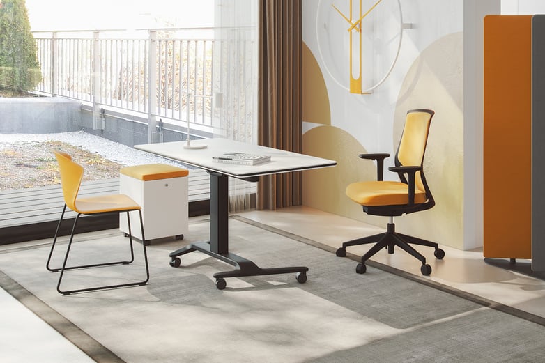 Les sièges comme le modèle TNK Flex se distinguent par leurs qualités ergonomiques et leur capacité à prendre soin du dos et de la posture ; ou dans le cas de Stay et de Trim, ils sont capables d’apporter du confort et diverses fonctionnalités pour le travail quotidien. Par ailleurs, les tables réglables en hauteur d'Actiu permettent de s’adapter également au mouvement du corps et à chaque tâche spécifique. Des modèles réglables en hauteur, comme Mobility et Talent, constituent d’excellents choix pour un Home Office efficace, confortable et sûr.