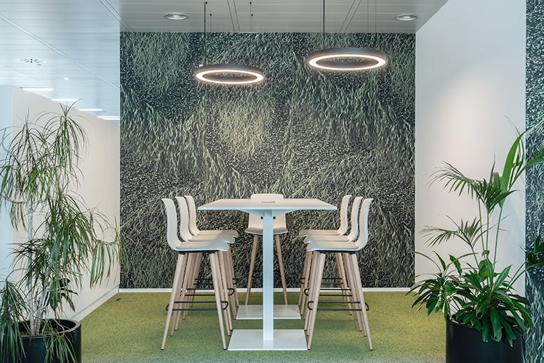 Plantes naturelles, murs teints en vert ou tapissés de motifs végétaux, lambris en bois, panneaux acoustiques dans des tons naturels, moquettes qui recréent la terre et l'herbe, ou éclairage qui simule des feuilles tombant du plafond, sont quelques-uns des moyens utilisés par les architectes pour immerger les travailleurs dans un environnement naturel. Des détails qui améliorent leur état d'esprit et les invitent à explorer un espace qui offre de nombreuses et très différentes alternatives de travail.
