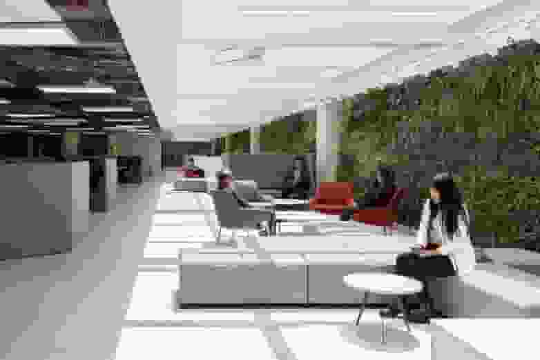 Les étudiants bénéficient également de lieux de rencontre dans les espaces extérieurs et intermédiaires, le tout dans un style jeune et informel.