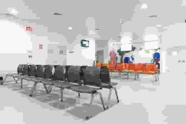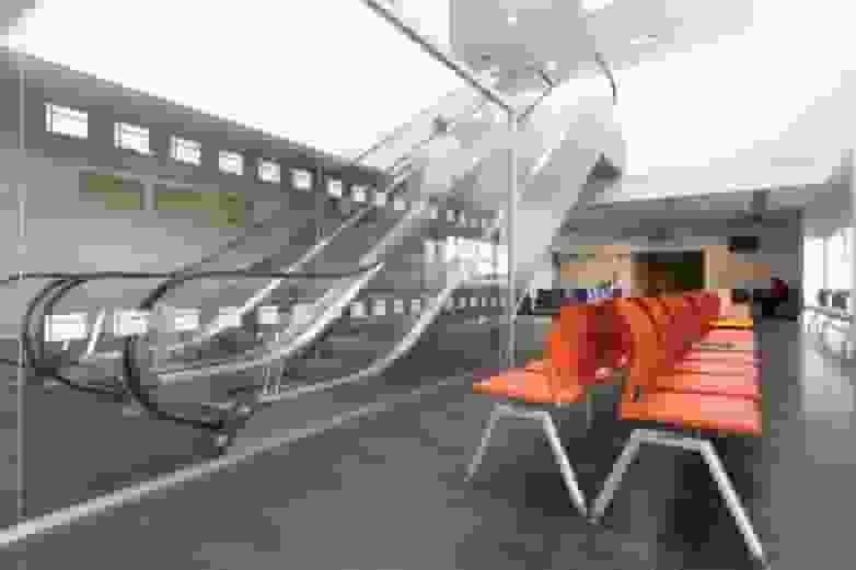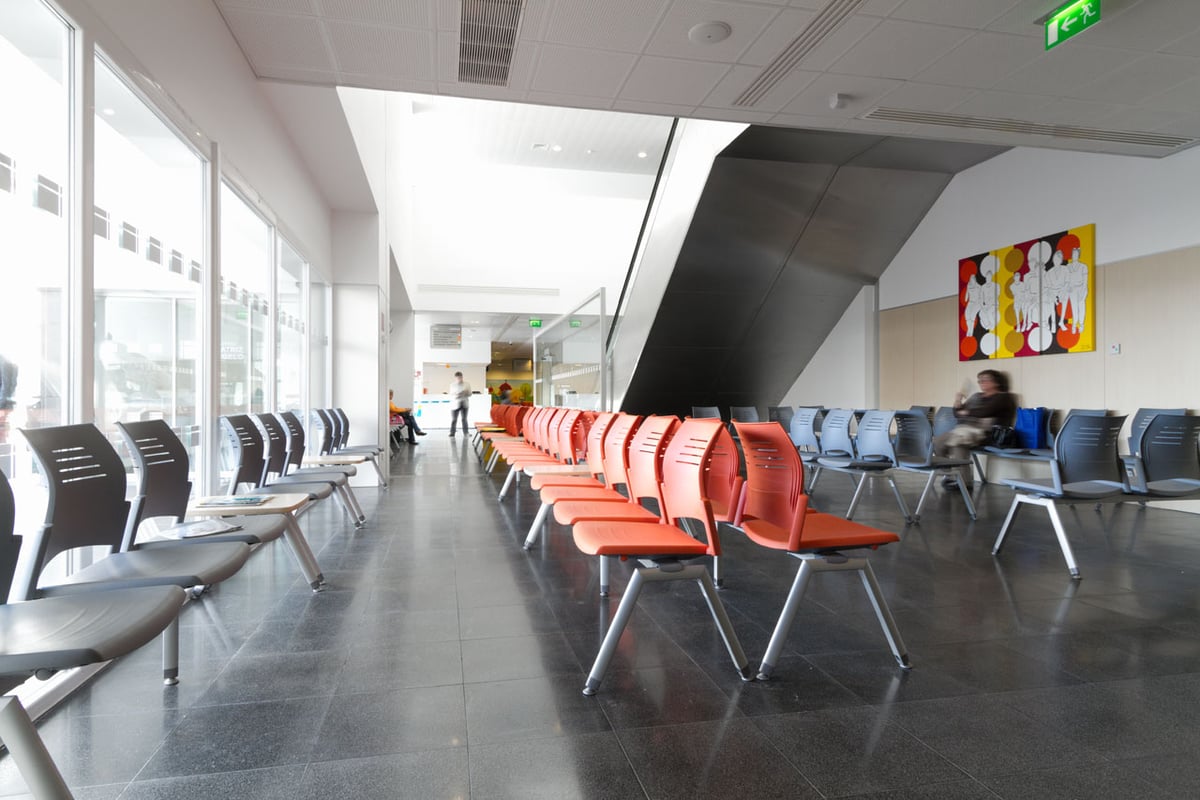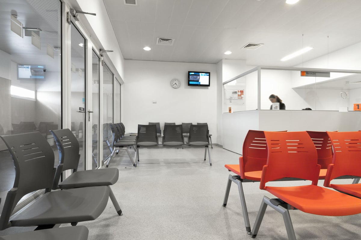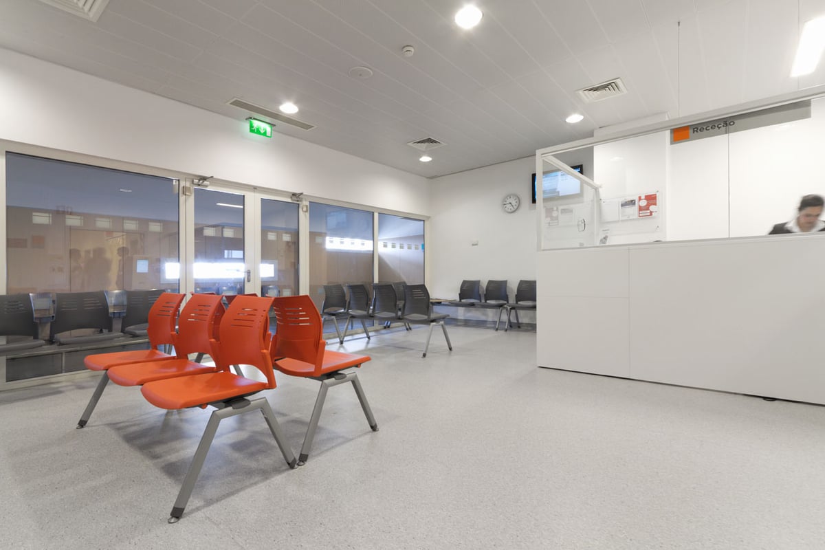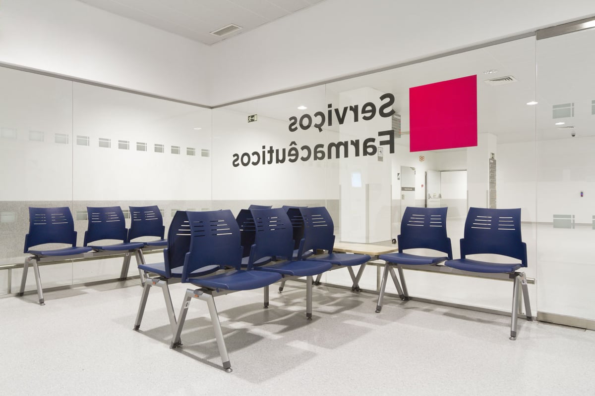 Les cinq étages qui composent l'enveloppe du bâtiment, sont interrompus par des cours et des ouvertures dans les façades, conçues délibérément pour capter la lumière naturelle constante. Ces emplacements permettent également de profiter du paysage et d'une meilleures ventilation naturelle. La poutre d'assise Spacio aménage les espaces d'attente. Fabriqué en polypropylène et en fibre de verre, elles offrent une ample gamme de coloris.