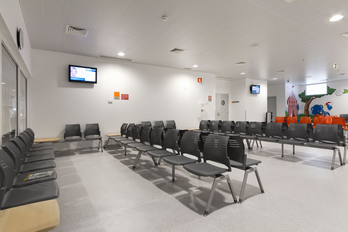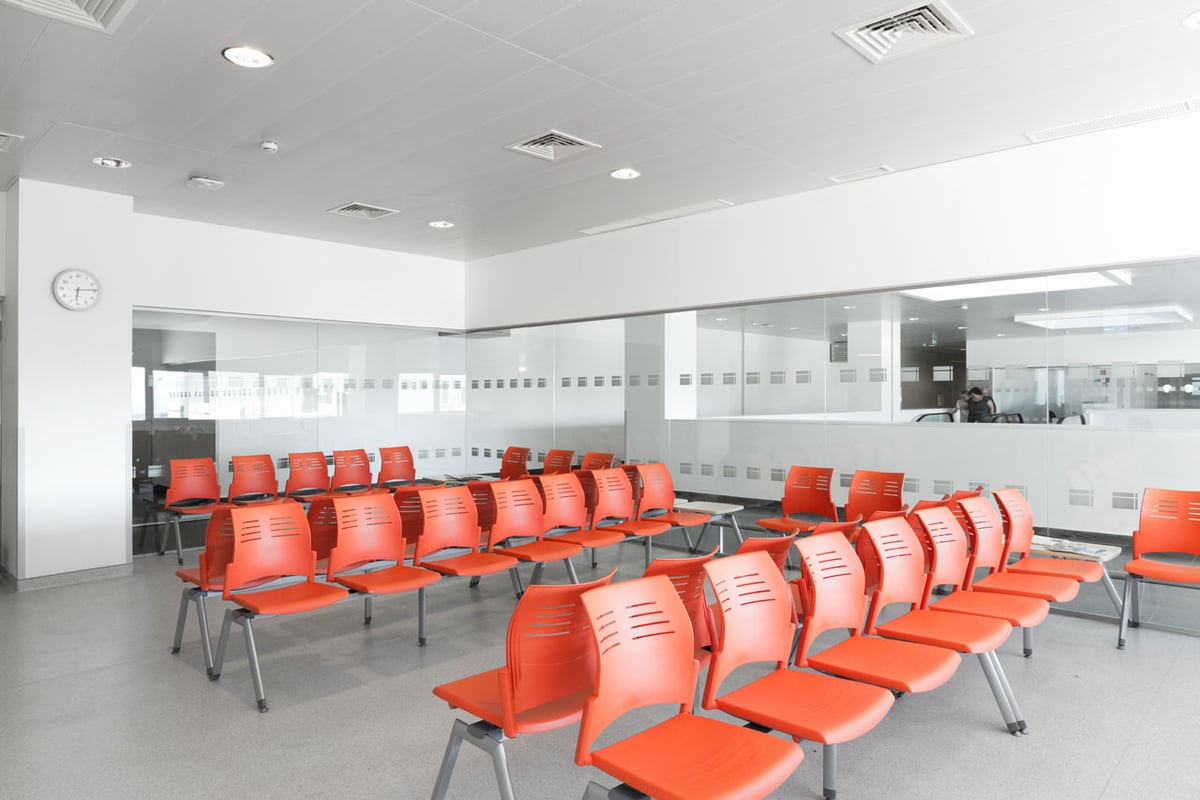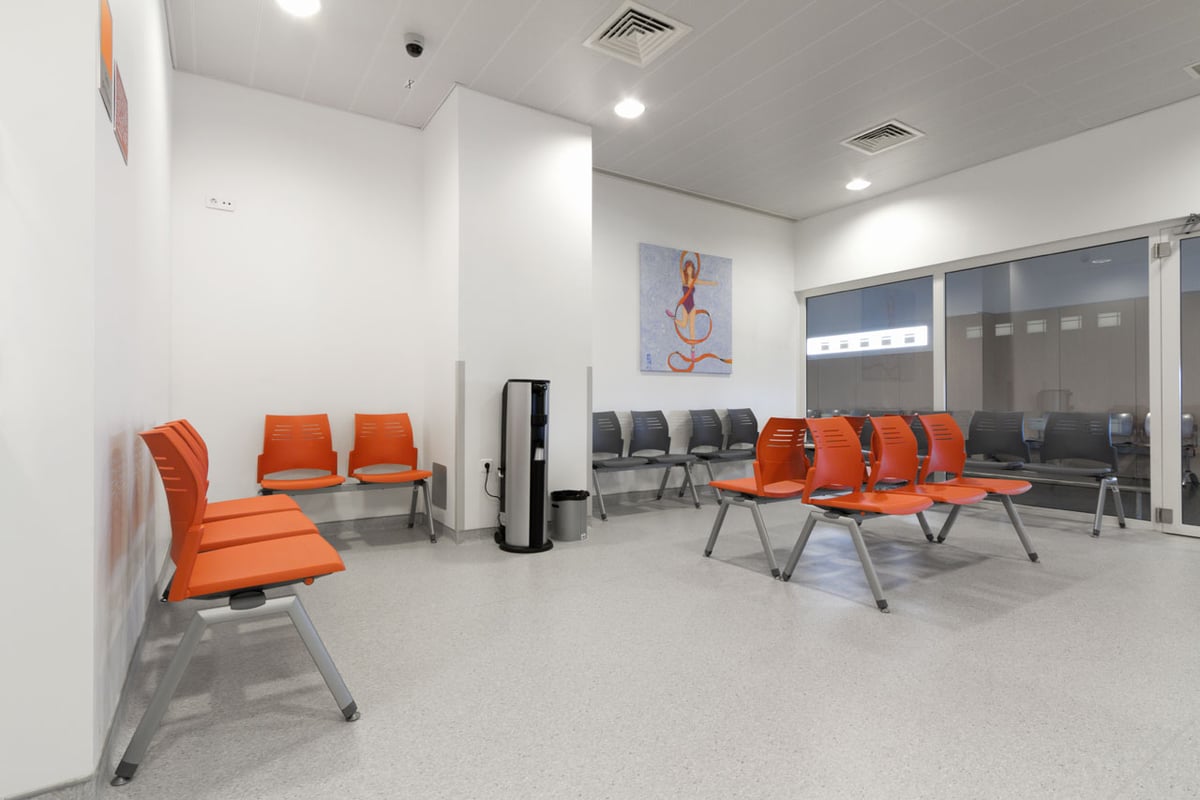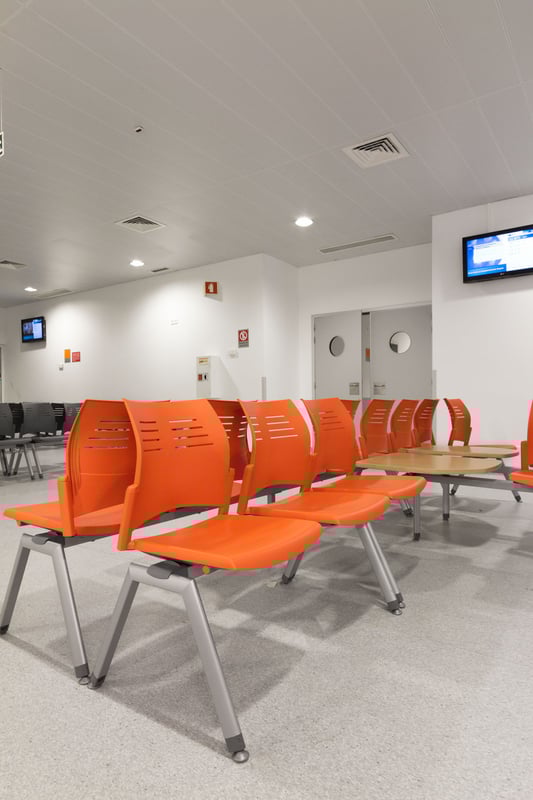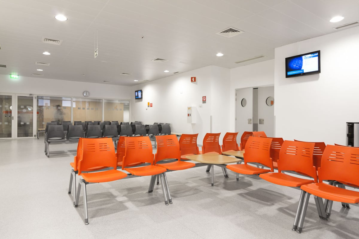 Les cinq étages qui composent l'enveloppe du bâtiment, sont interrompus par des cours et des ouvertures dans les façades, conçues délibérément pour capter la lumière naturelle constante. Ces emplacements permettent également de profiter du paysage et d'une meilleures ventilation naturelle. La poutre d'assise Spacio aménage les espaces d'attente. Fabriqué en polypropylène et en fibre de verre, elles offrent une ample gamme de coloris.