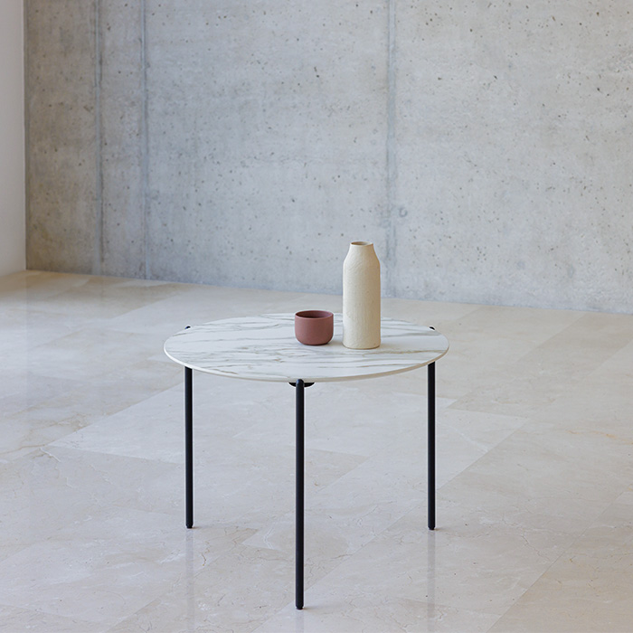 4 formats différents, rond et carré, 3 hauteurs et 12 finitions de plateau différentes, dont la porcelaine, le phénolique ou les placages en chêne naturel, vous permettent de personnaliser tout design et de vous adapter à différents styles de décoration.
